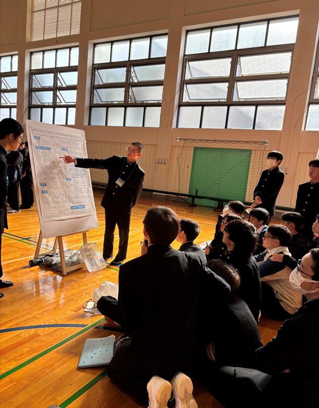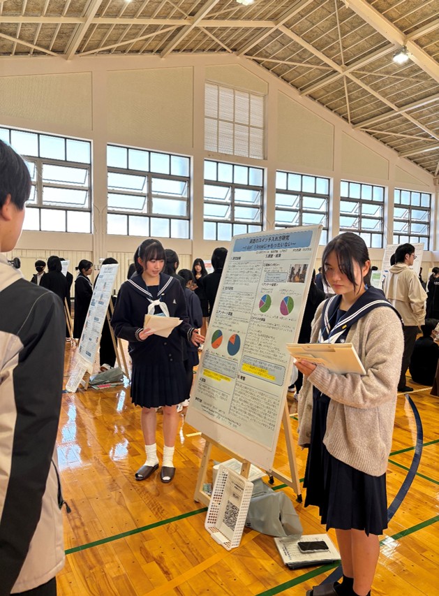 本校文理探究科の1年生11名が、広大附属高校でポスター発表しました。2年生に交じっての発表に緊張しましたが、20分2ターンの発表を行い、大学や高校の先生や生徒の質問にも堂々と答えていました。たくさんの指摘をいただき、今後の研究のヒントも数多く得られたようでした。お昼には広島風お好み焼をみんなで食べて、平和公園の資料館も見学しました。多くの学びのある有意義な一日でした。広大附属高校の皆さん、大変お世話になりました。