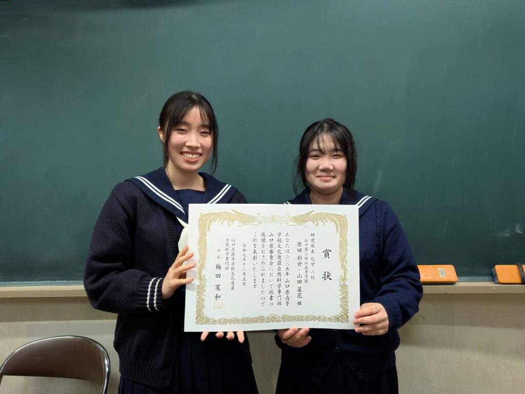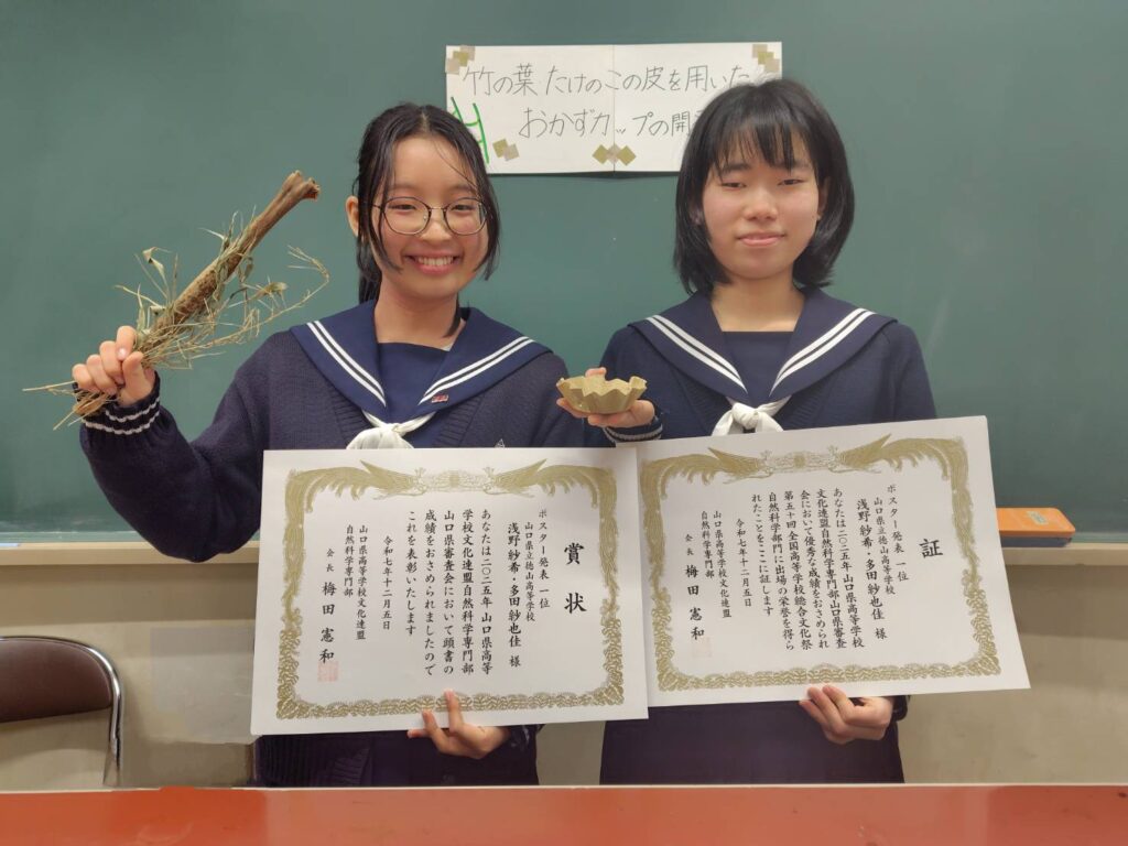 浅野さん多田さんは2026年度全国高等学校総合文化祭(あきた総文2026)自然科学部門に,山口県代表として出場が決まりました。