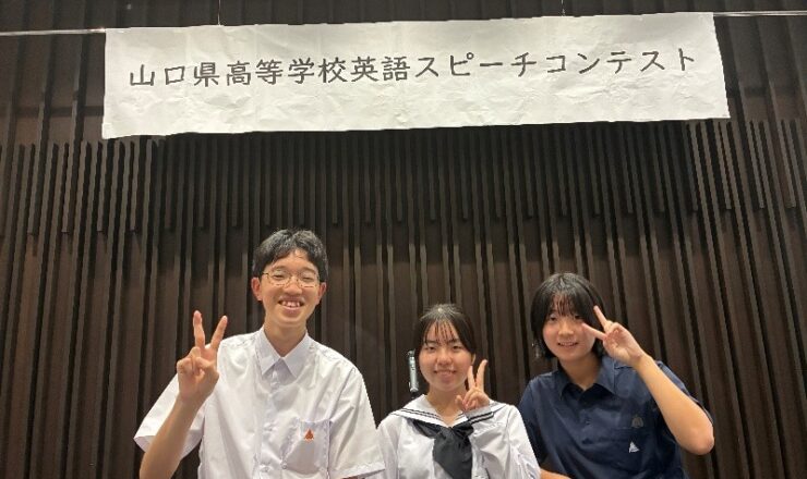 第44回山口県高等学校英語スピーチコンテストに2年1組吉田理紗さん、2年8組弘中南歩さん、1年7組安藤大輔くんが出場しました。3人とも見事な英語スピ...