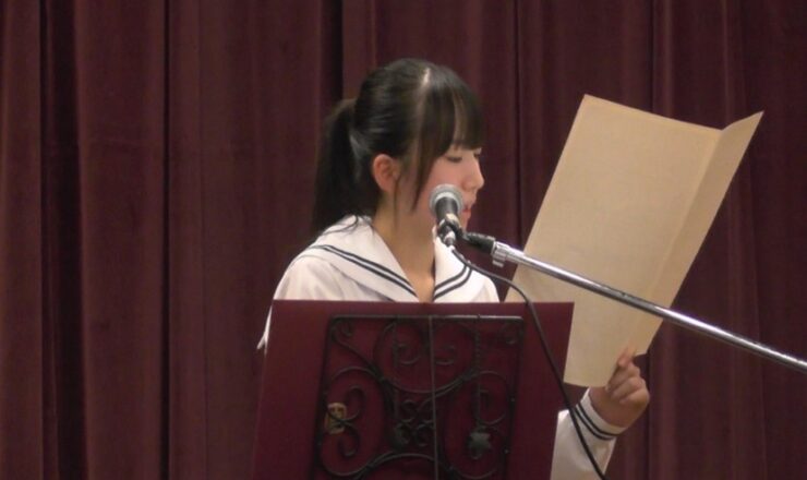 第52回グレープカップ英語朗読コンテストに1年8組の三戸愛果さんが出場し、福岡女子大学エリザベス・リー・ホールにて堂々と「ナルニア国物語」の一節を朗...