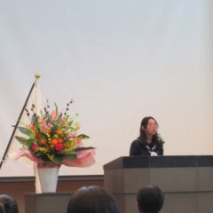 4月11日(金)、離任式を行いました。出席された6名の先生方から離任の挨拶をいただきました。生徒会から花束が渡され、最後に拍手でお送りしました。先生...