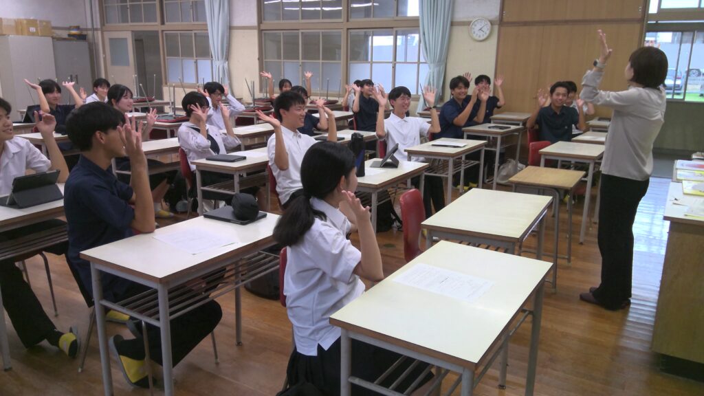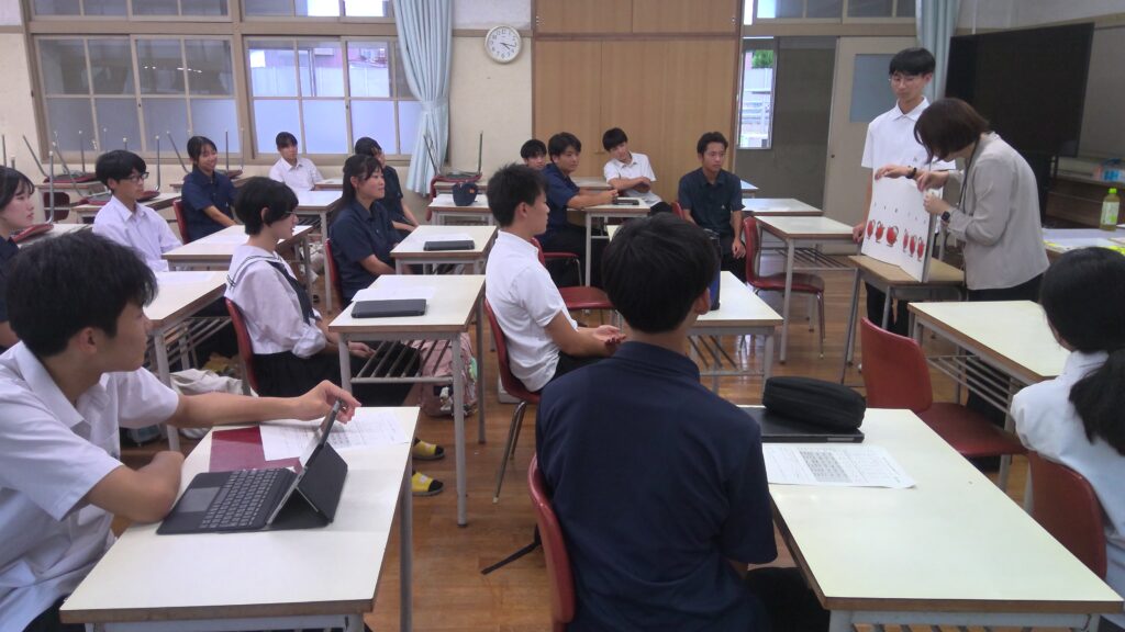 9月25日、26日の放課後、周南市中央図書館の弥益先生をお招きし、「手遊び歌・絵本の読み聞かせ講習会」を実施しました。10月~11月にかけ、家庭科の授業で赤ちゃんとのふれあい体験を予定しています。その際に、赤ちゃんに喜んでもらえよう、実演する際のコツを教えていただいたり、お勧めの大型絵本を紹介していただいたりした後、実際に練習をしました。