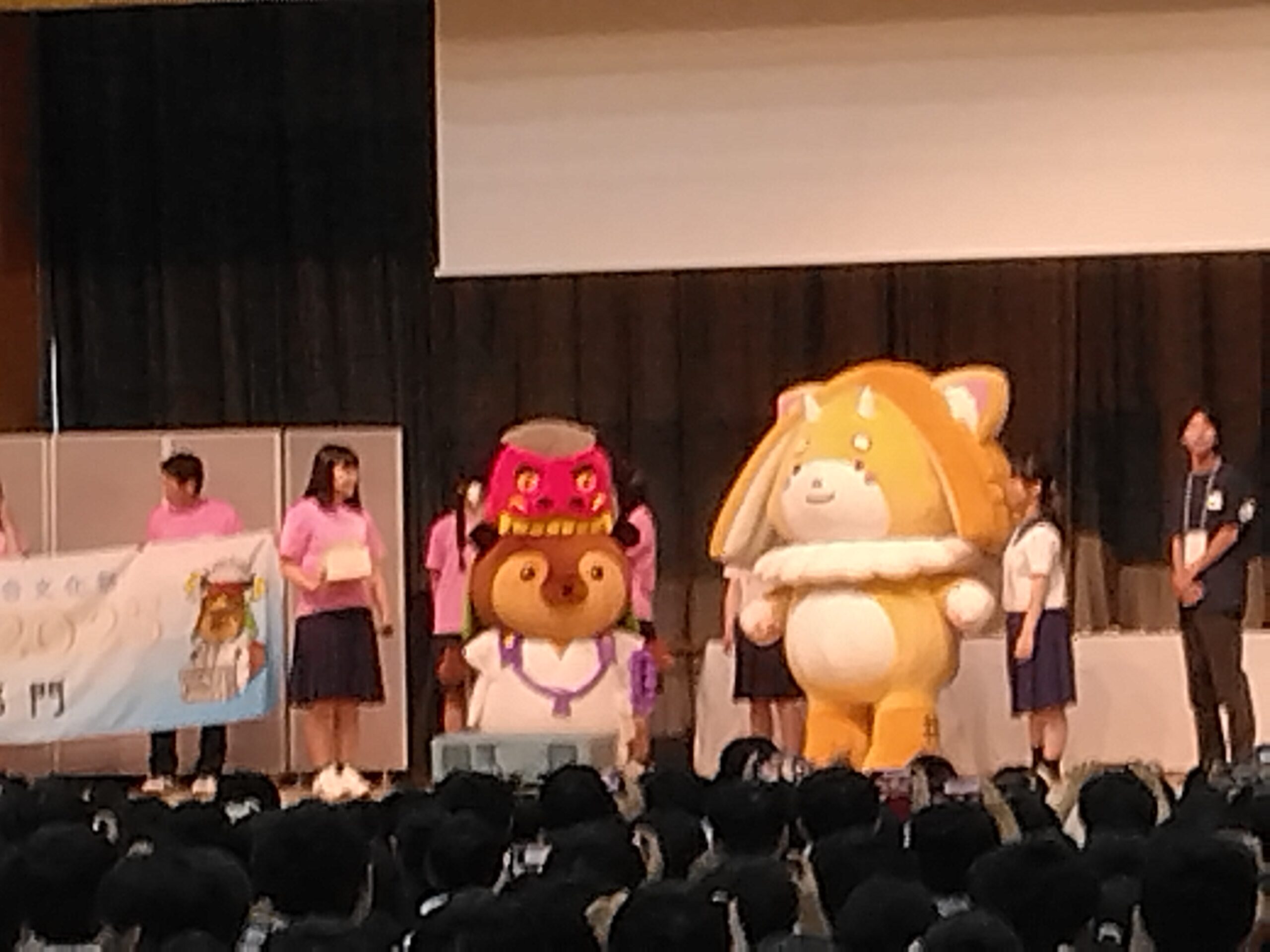 最初の写真は 秋田のマスコットキャラクター あきたぽ と 香川のマスコットキャラクター さぬぽん です。